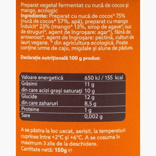 Joyurt Rawckers este un produs fermentat din cocos cu mango, o alternativă vegetală la iaurtul tradițional, ideală pentru persoanele care nu doresc sau nu pot consuma iaurt din lapte.