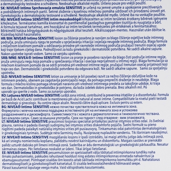 Formula blândă a loțiunii Nivea Intimo Sensitive nu conține săpun alcalin sau coloranți.