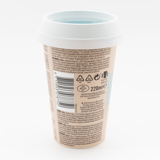 Băutură UHT cu cafea arabica Starbucks certificată Fairtrade și lapte fără lactoză, fără zahăr adăugat, cu îndulcitor.