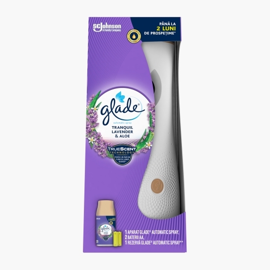 Glade Automatic Spray oferă un parfum încântător săptămână după săptămână, în mod automat, fiind perfect pentru camerele mai mari ale casei.