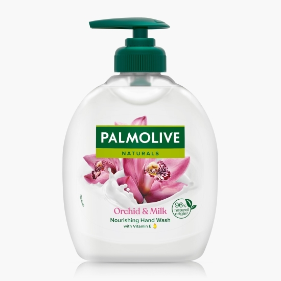 Săpun lichid de mâini Palmolive Naturals Milk & Orchid, cu extract de orhidee și lapte hidratant.