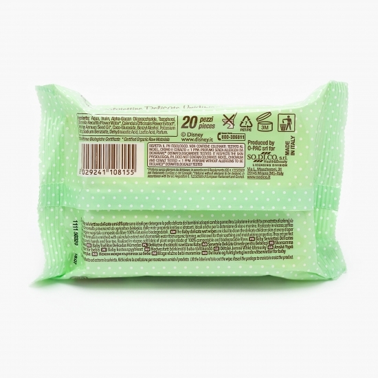Aceste șervețele umede au o formulă îmbogățită cu extract de gălbenele și mușețel, care provin din agricultură organică. Ele sunt cunoscute pentru proprietațiile lor de calmare și hidratare.