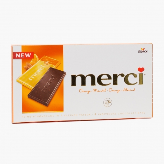 Tablete de ciocolată amăruie cu migdale și suc concentrat de portocale 100g, 4 buc