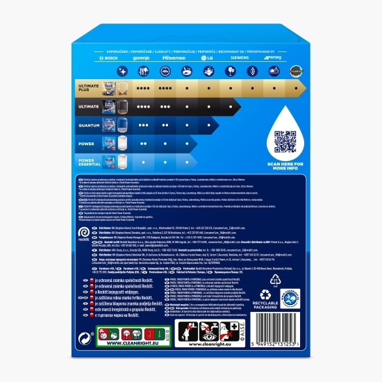 Actiune de pre-înmuiere / Curatare puternica / Dizolvarea grasimilor / Functie de clatire / Protejeaza masina de calcar / Actiune la temperatura scazuta / Elimina si resturile vechi / Protectia filtrului / Protejeaza paharele / Nu se desface / Înlatu
