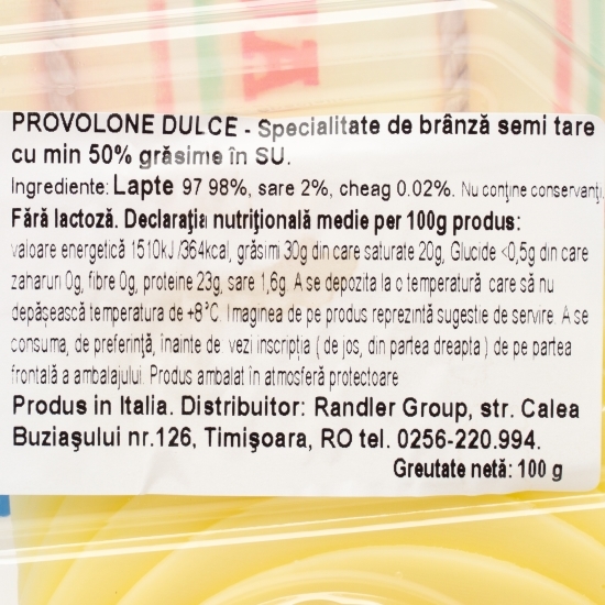 Provolone dulce de la Auricchio este o specialitate italiană de brânză semi-dură din lapte de vacă, cu un gust distinct și o aromă blândă.