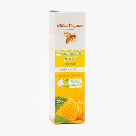 Spray-ul de gât Forte cu propolis este un produs fără alcool, 100% natural, ce contribuie la menținerea sănătății căilor respiratorii superioare, la creșterea rezistenței și a capacității de adaptare a organismului pentru sezonul rece.