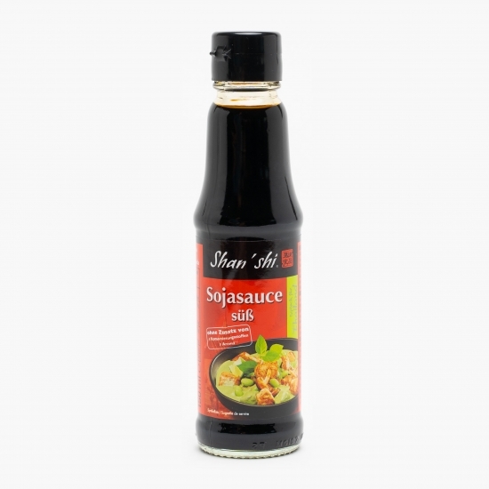 Sosul de soia este probabil cel mai bine-cunoscut și cel mai des folosit ingredient în bucătăria asiatică. Sosul de soia dulce Shan’shi se obține din boabe fermentate de soia, boabe prăjite și sare. Cu cât procesul de maturare este mai lung, cu atât sosul devine mai gros și mai dulce. Sosul de soia dulce Shan’shi oferă un gust dulce oricărui preparat asiatic.