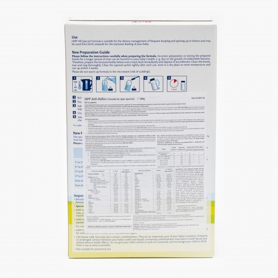 Formula de lapte specială Anti-Reflux AR este un aliment dietetic recomandat pentru scopuri medicale special, de la naștere.