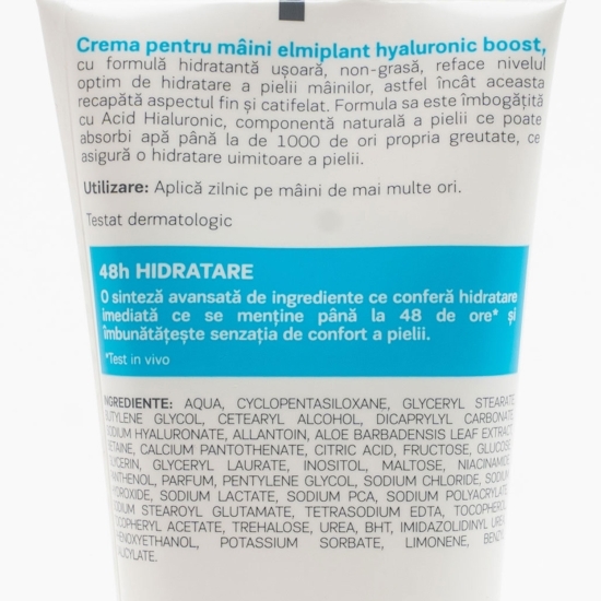 Crema pentru mâini Hyaluronic Boost cu formulă hidratantă ușoară, non-grasă reface nivelul optim de hidratare a pielii mâinilor, astfel încât aceasta recapătă aspectul fin și catifelat.