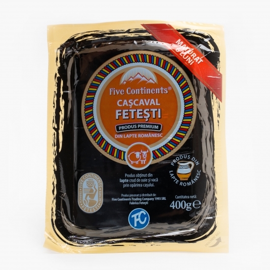 Cașcaval Fetești din lapte crud de oaie și vacă, maturat 6 luni.