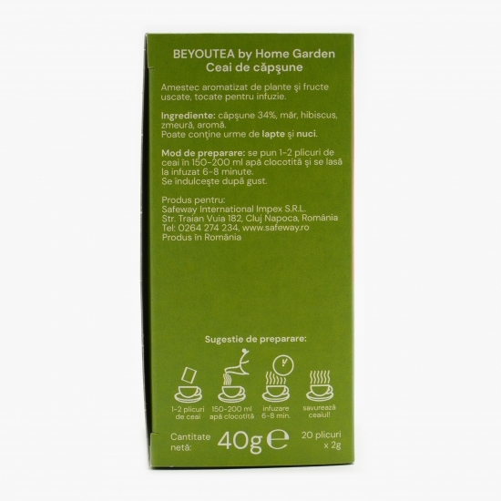Ceaiul de căpșune de la BEYOUTEA, cu o cantitate de 20 de pliculețe pe cutie, pentru ca tu să te bucuri de aroma încântătoare a ceaiului tău preferat, oriunde te-ai afla.