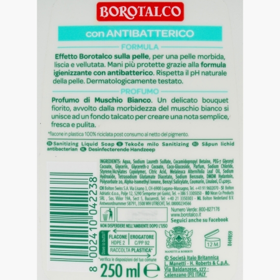 Săpunul lichid Borotalco Antibacterian are grijă de mâinile tale, lăsându-le catifelate și hidratate zi după zi.