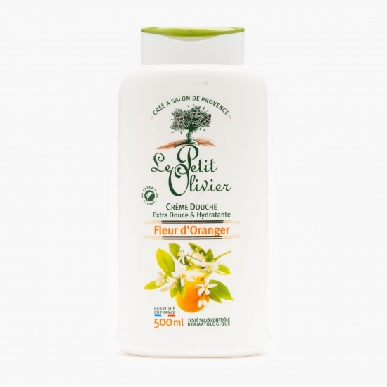 Delicios parfumată, crema de duș Le Petit Olivier Flori de portocal vă hrănește pielea și eliberează un parfum proaspăt și relaxant.