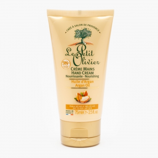 Crema de mâini Le Petit Olivier cu ulei de argan calmează pielea și aduce o senzație de confort. Hrănite intens, mâinile tale sunt moi și regenerate. Caracteristici: compus din 98% ingrediente de origine naturală. Restul de 2% garantează senzorialitatea și buna conservare a produsului; fără materie animală; fără silicon; testat dermatologic.