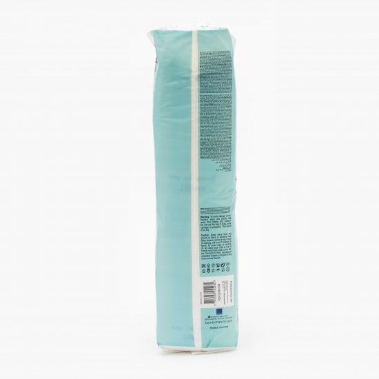 Scutecele Bambo Nature sunt fine, confortabile și păstrează chiar și cea mai sensibilă piele uscată. Scutecele sunt create cu o bază super-absorbantă, incluzând cea mai recentă tehnologie, care îndepărtează umezeala de pe pielea bebelușului și rezistă la mai multe udări - chiar și peste noapte. Indicatorul de umezeală își schimbă culoarea și este ușor de observat când este nevoie de schimbarea scutecului.