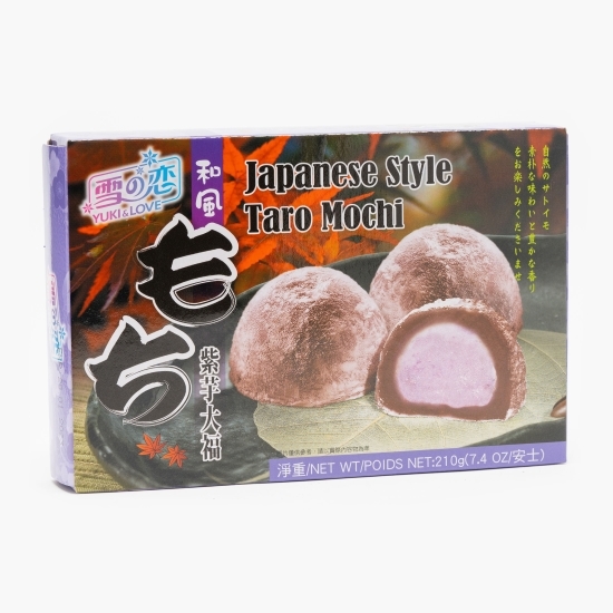 Această variantă de mochi de la Yuki & Love este inspirată de rețeta clasică, având umplutură delicioasă de taro. Taro este o plantă tropicală foarte apreciată în bucătăria internațională, cu gust dulceag de nucă și ușoare note de vanilie sau nucă de cocos.