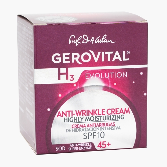 Crema antirid intens hidratantă cu SPF 10 Gerovital conține o combinaţie de ingrediente multifuncţionale, care asigură efectul antirid, hidratare intensă, protecţie împotriva radiaţiilor UV.