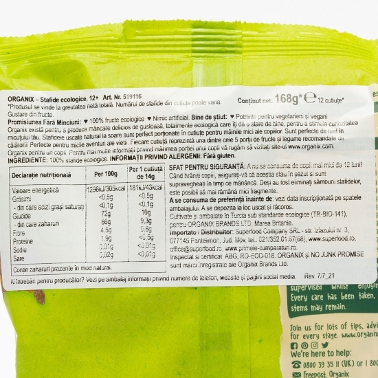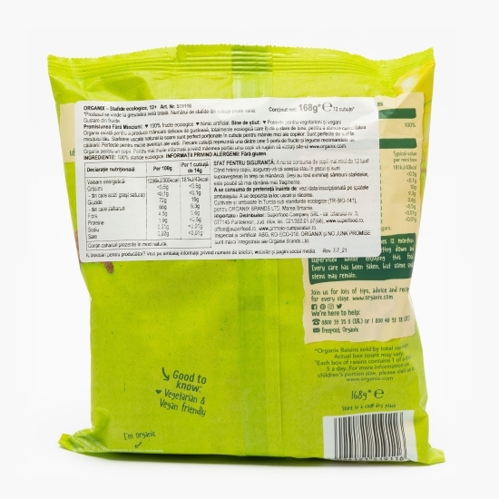 Stafidele Organix sunt uscate natural la soare și sunt perfect porționate în cutiuțe pentru mâinile mici ale copiilor.