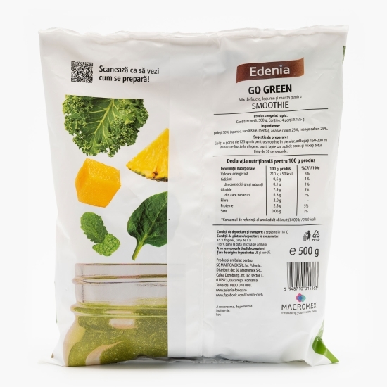 Cu Edenia Smoothie Go Green îți poți lua simplu și rapid o doză de vitamine în forma lor naturală, direct din fructe, legume proaspete și plante aromatice, congelate rapid.