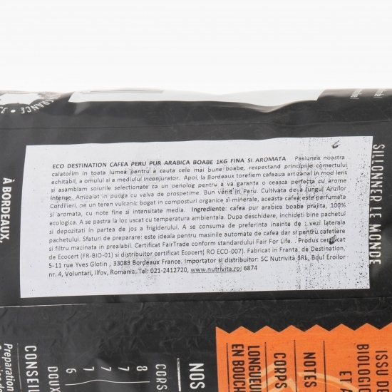 Bine ați venit în Peru! Cultivată de-a lungul Anzilor Cordilieri, pe un sol vulcanic, bogat în compuși organici și minerale, cafeaua boabe cu origini Peru este parfumată și aromata, cu gust lejer de boabe rumenite. Provine din agricultura ecologică 100% și este ideală pentru cei ce iubesc cafeaua de intensitate medie. Se poate consuma deopotrivă dimineața și după masa de prânz, oferindu-ți un strop de energie și o stare de bine. Intensitate 7/10