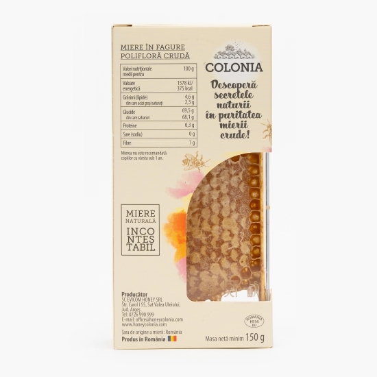 Fiind un produs realizat 100% natural, de către albine în stup, fără intervenție umană sau mecanică, greutatea fagurelui poate varia între 150 și 220g.