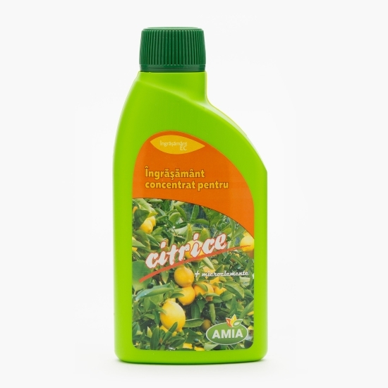 Lamâi, portocal, mandarin. Instrucțiuni de aplicare : Se aplică soluþia diluată la fiecare doua saptamâni, în perioada de vegetație. Prepararea soluției : 20 ml de soluþie se silueaza în 2 L de apă.Efect : îmbunătățește aspectul.