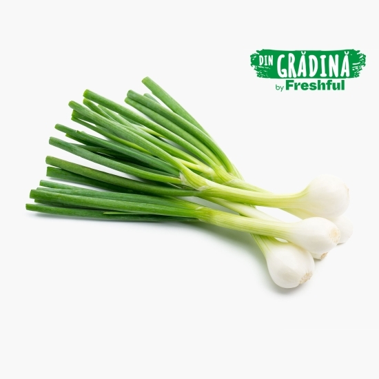 Ceapă verde eco provine de la Bioferma Niculești, aflată la 40km de depozitul
