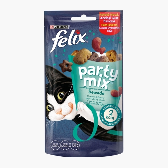 Trăiește mai multe momente plăcute alături de pisica ta cu noul Felix Seaside Mix – care conține un mix irezistibil și colorat de recompense, pline de arome delicioase și ademenitoare, într-o textură atrăgătoare.
