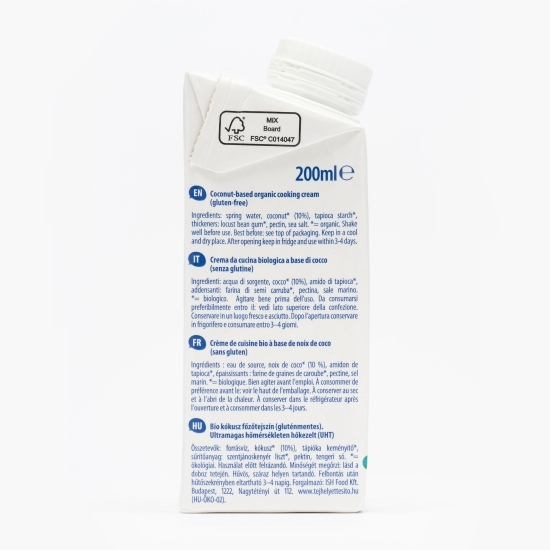 Crema ecologică vegetală din cocos pentru gătit The Bridge este un produs vegan, fără lactoză, fără gluten, fără organisme modificate genetic, obținut din ingrediente ecologice.