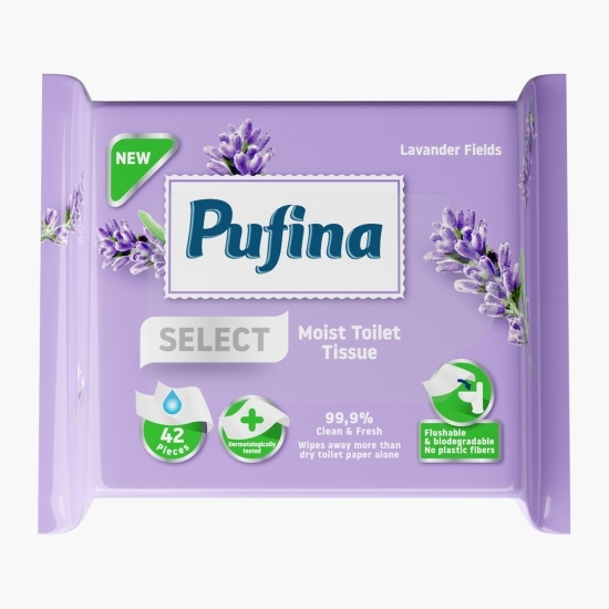 Hârtie igienică umedă Pufina Select Lavender fields, 1 strat.