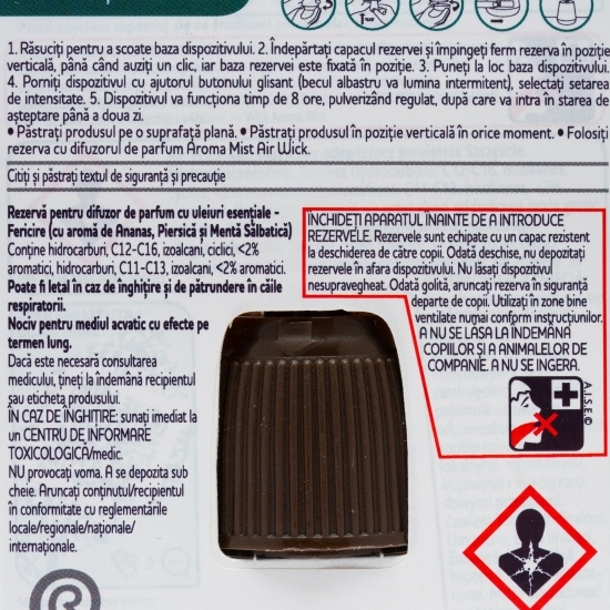 Produsul conține o rezervă pentru difuzor de parfum cu uleiuri esențiale Air Wick Aroma Mist.