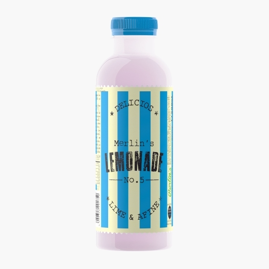 Băutură răcoritoare necarbogazoasă cu suc de lime și afine, cu zahăr și îndulcitor.
