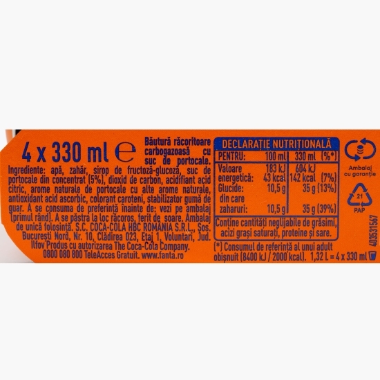 Fanta Portocale: băutura răcoritoare carbogazoasă emblematică, delicioasă, făcută cu suc de fructe.