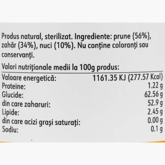 Combinația de nuci cu prune conferă produsului o savoare deosebită și o notă distinsă a gustului.