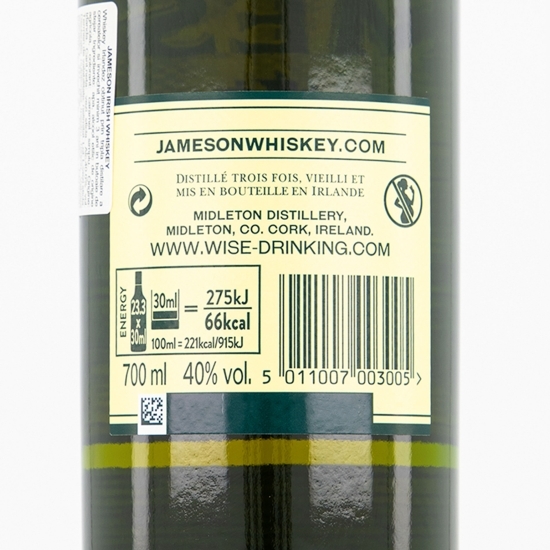 Jameson Original Irish Whisky este un blend cu arome lemnoase, note dulci de vanilie, malţ şi condimente, împrumutate în timpul maturării de minimum 4 ani în butoaie de sherry. Triplu distilat, acest sortiment clasic este cu siguranţă unul deosebit, apreciat de toată lumea, care îi surprinde plăcut până şi pe cei mai îndârjiţi critici.