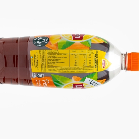 Băutură răcoritoare necarbonatată cu extract de ceai negru și suc de piersică din concentrat.