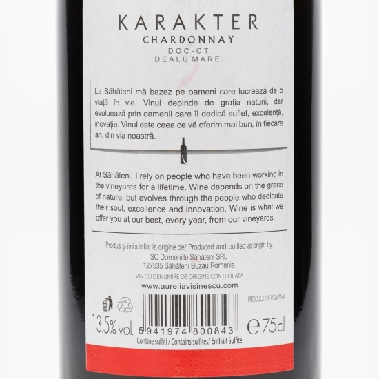Un Chardonnay clasic, proaspăt, cu aciditate bună ce îi conferă persistență și vioiciune.