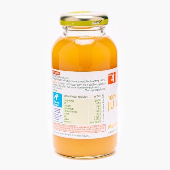 Suc de fructe 100% (mere, portocale, mango și banană), îmbogățit cu vitamina C.