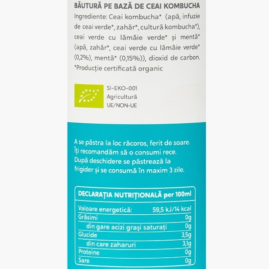 Kombucha eco cu mentă și lămâie verde 0.33l