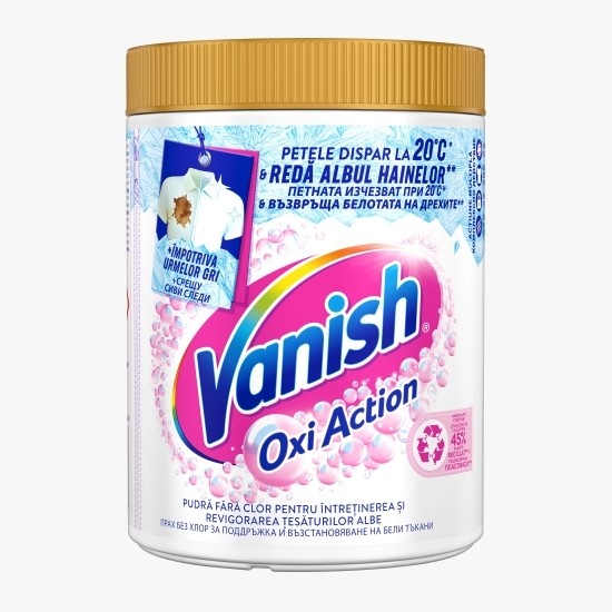 Vanish White înălbește rufele albe la fiecare spălare, cu până la 3 nuanțe mai albe față de cele înnegrite (rezultatele pot varia).