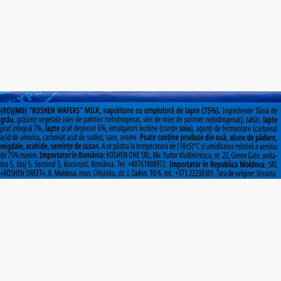 Napolitanele cu umplutură de lapte de la Roshen sunt crocante, având un echilibru perfect între foaia de napolitană și umplutură.