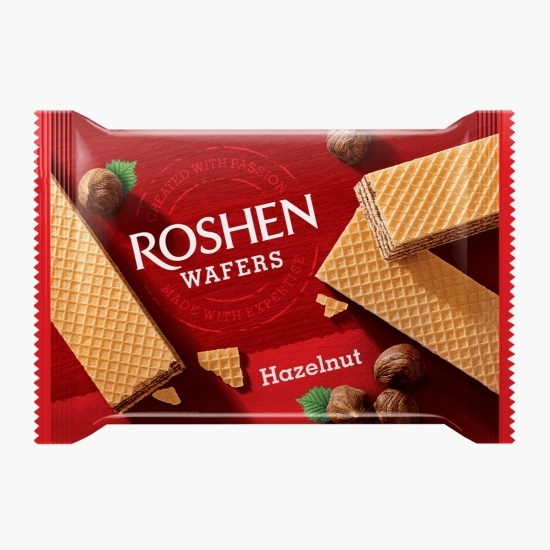 Napolitanele cu umplutură de alune de pădure de la Roshen sunt crocante, având un echilibru perfect între foaia de napolitană și umplutură.