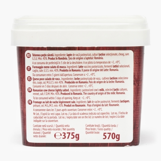 Telemeaua de vacă puțin sărată De la Ferma cu Omenie conține de 2 ori mai puțină sare față de alte produse similare de pe piață, fiind astfel o opțiune alimentară sănătoasă pentru toate categoriile de consumatori.