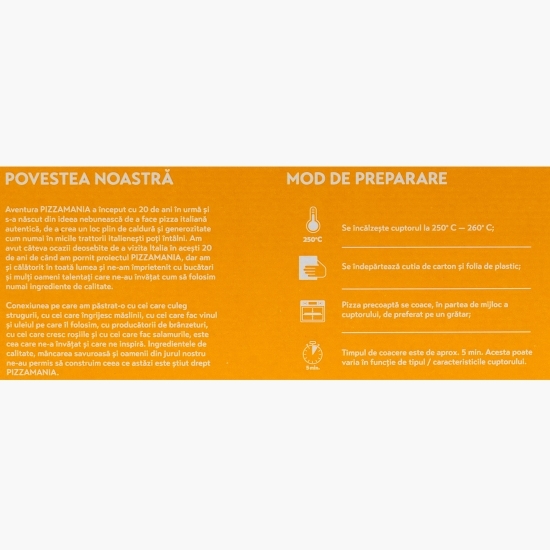 Cu o experiență de peste 20 de ani în domeniu, Pizzamania a reușit să perfecționeze aluatul, timpul de coacere și echilibrul ideal al ingredientelor. Rezultatul? O pizza necongelată, de calitate.