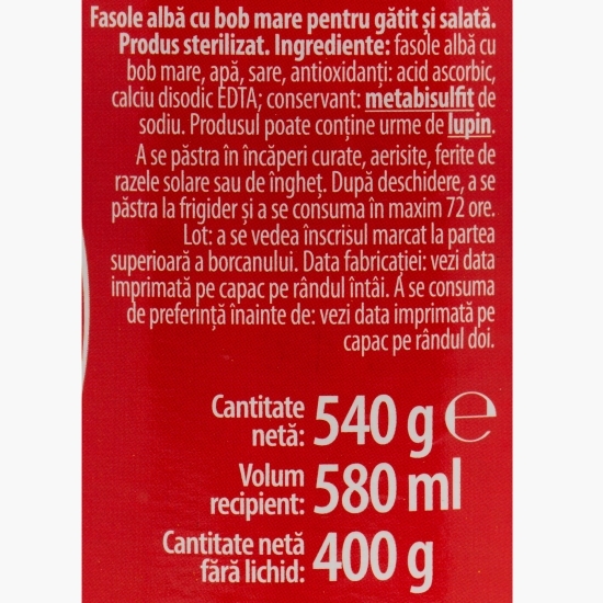 Fasolea albă este o opțiune nutritivă și convenabilă pentru mesele tale. Păstrându-și textura fermă și gustul autentic, este perfectă pentru supe, tocănițe sau salate. O alegere simplă și gustoasă pentru a adăuga proteine și fibre în dieta zilnică.