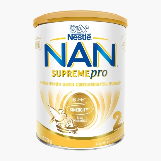 Formula de lapte pentru bebeluși Nestlé Nan Supreme Pro 2 este un lapte de continuare pentru sugarii sănătoși cu vârste cuprinse între 6-12 luni, cu o tehnologie inovatoare care cuprinde 6 hmo, dual probiotics și gentle optipro.