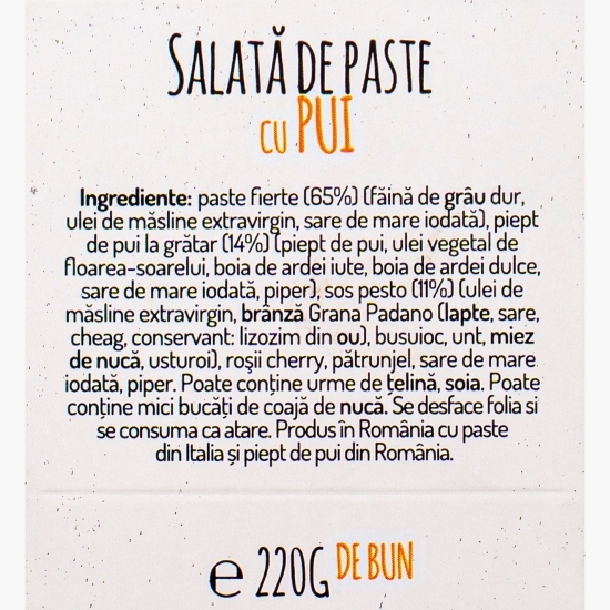 Salata de paste cu pui FruFru este preparată doar cu ingrediente pe care le cunoști, 100% fără bazaconii.