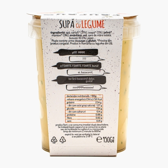 Supa cu legume Frufru este preparată doar cu ingrediente pe care le cunoști, 100% fără bazaconii.