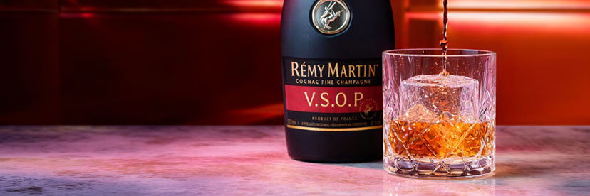 Turnăm 40ml de coniac Rémy Martin VSOP peste gheață.